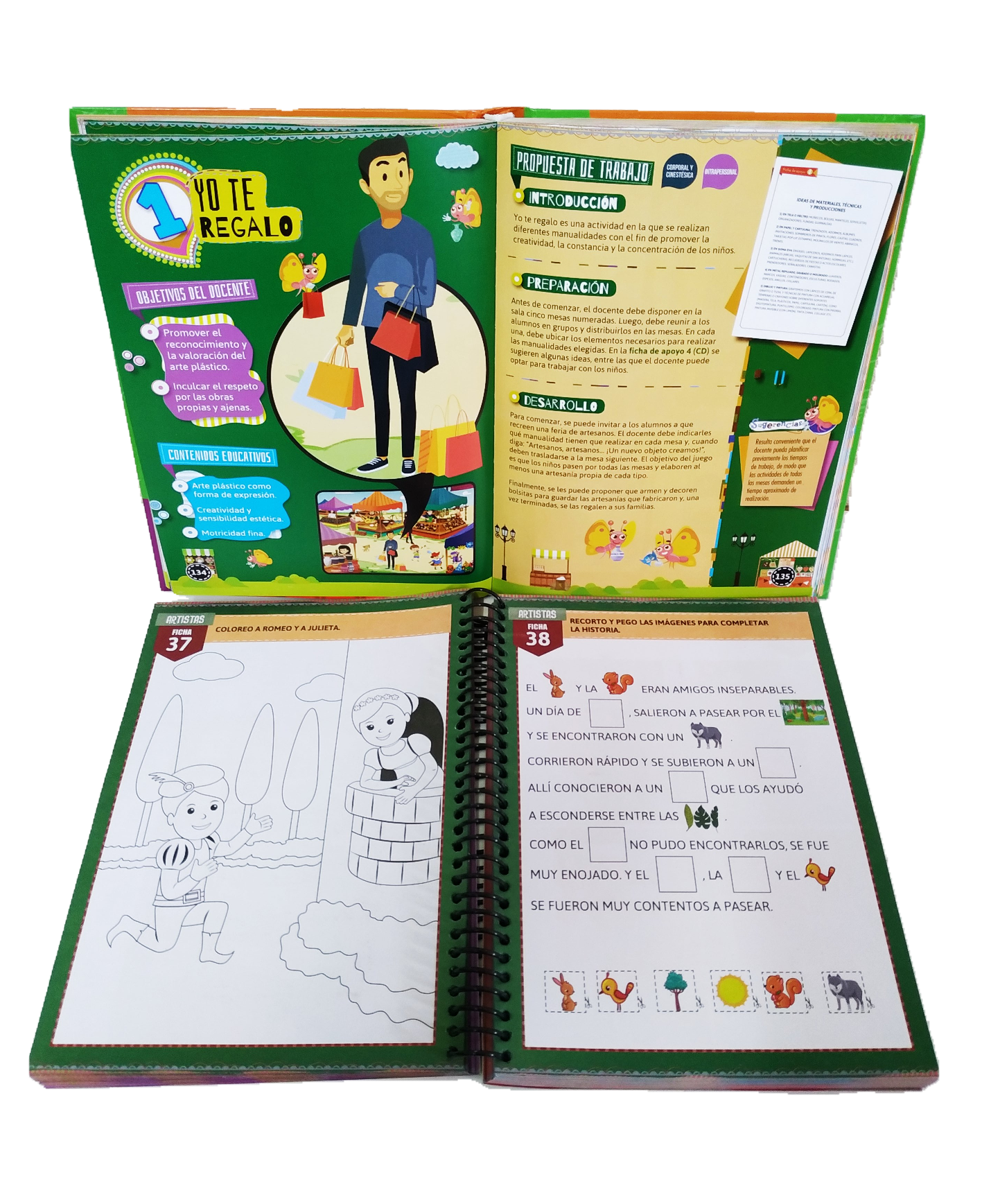 - Libro anillado con todas las fichas presentes en el libro para que el docente las reproduzca y entregue a los niños.